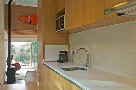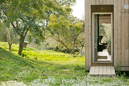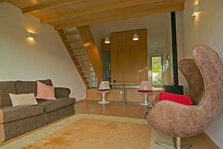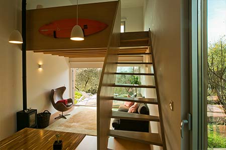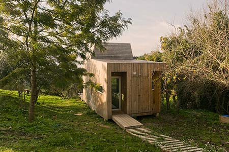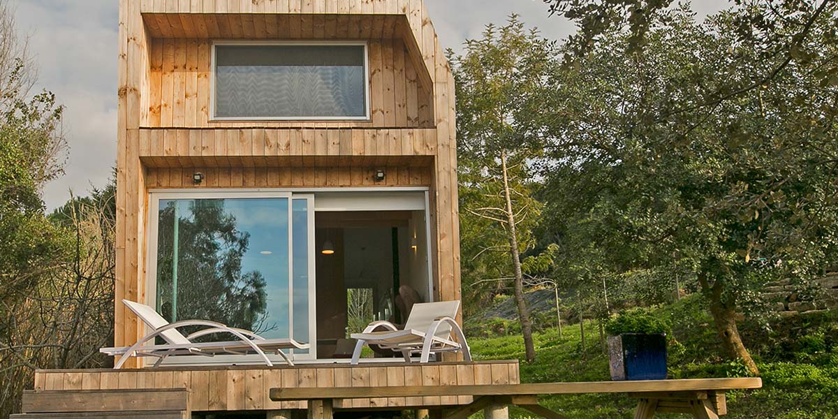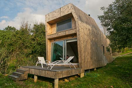 Wooden house of modern lines with about 38 m2 of surface with fully equipped kitchen, bathroom, large living room and mezanine.
