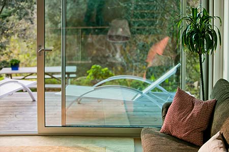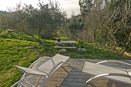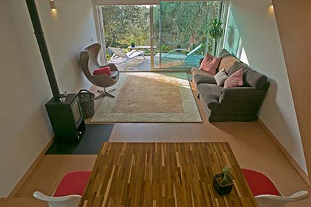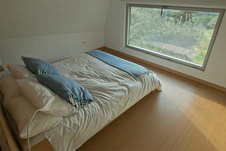 New house with a modern and functional decoration, living room with high and wide windows giving onto its own garden and mezanine also with a large window with view of countryside and sea.